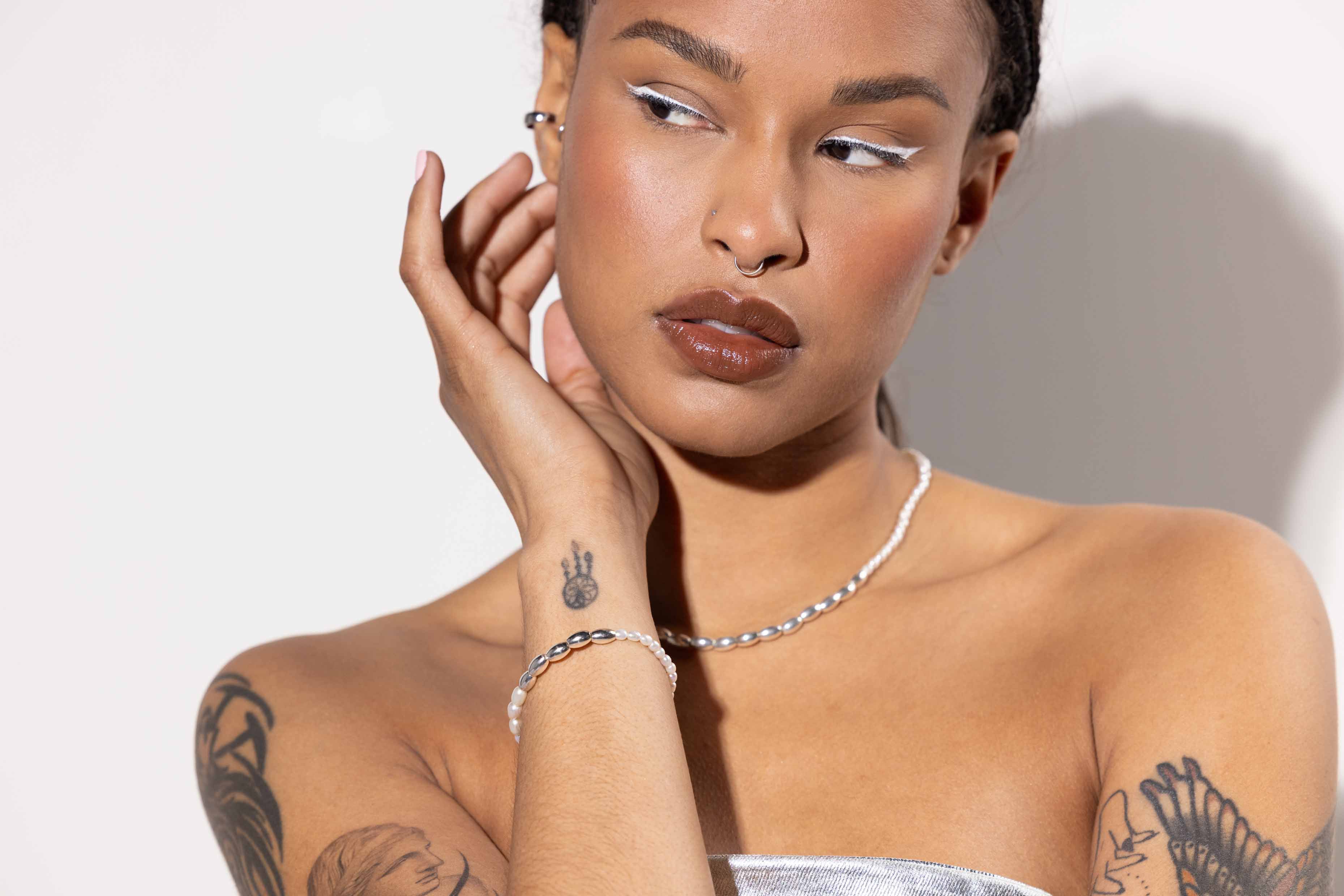We design with freshwater pearls, naturally formed in freshwater mussels. Each pearl develops its own unique shape, luster, and surface—so no two pieces are ever exactly alike.