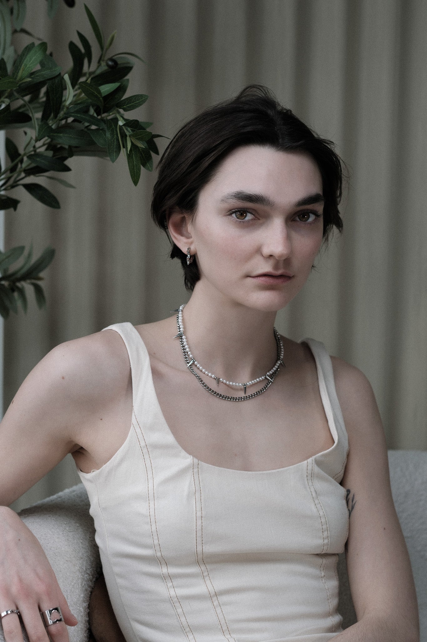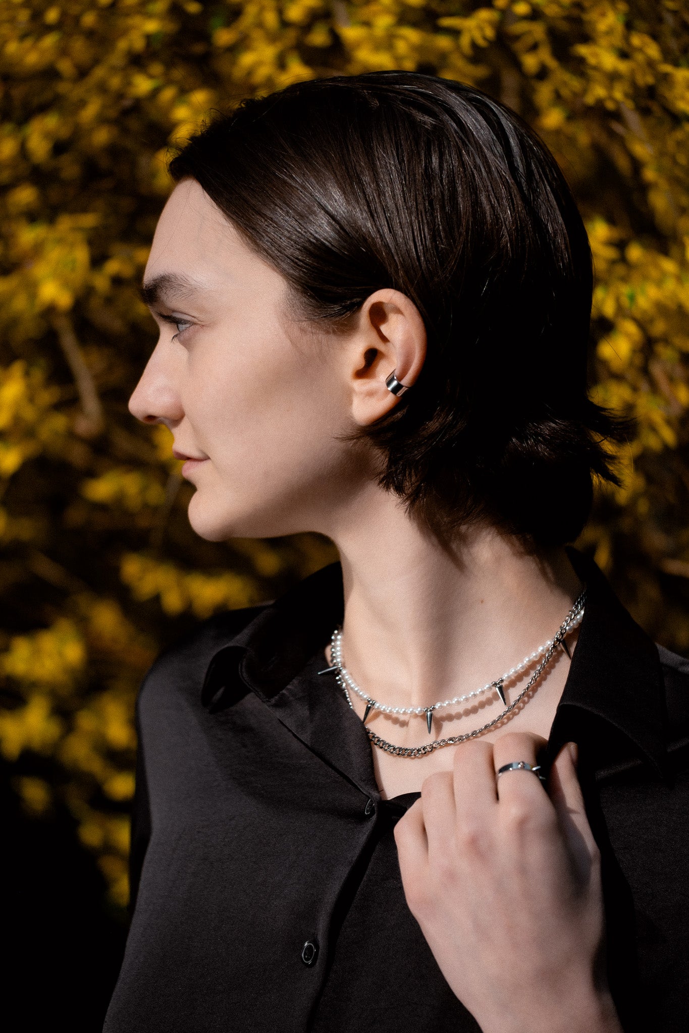 Anarchy isn’t disorder — it’s self-rule. A two-layered necklace of chain, rivets and pearls that captures strength in softness. Made for those who grew up feeling a little too much, a little too different — and turned that into effortless power. An elevated staple with edge.